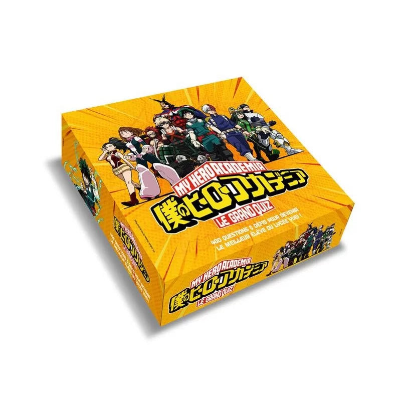 Vous êtes un fan inconditionnel de My Hero Academia et vous souhaitez prouver votre connaissance de cet univers incroyable ? Le Grand Quiz My Hero Academia est fait pour vous ! Dès 8 ans, ce jeu de quiz vous plonge dans l'univers de l'académie Yuei, où vous devrez tester vos connaissances pour devenir le fan suprême.