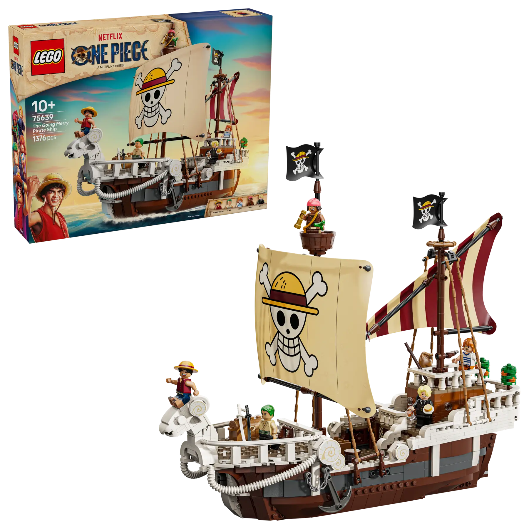 - Minifigurines LEGO® One Piece – Le set contient les minifigurines détaillées de Monkey D. Luffy, Zoro, Nami, Usopp et Sanji